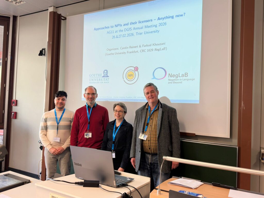 On 26 and 27 February 2026, the workshop Approaches to NPIs and their Licensing Conditions: Anything New? took place as part of the 48th Annual Conference of the German Linguistic Society (DGfS 2026). The workshop brought together researchers working on negative polarity items (NPIs) from theoretical, experimental, corpus-based, and cross-linguistic perspectives, with the goal of reassessing classic questions about NPI licensing in light of recent developments.